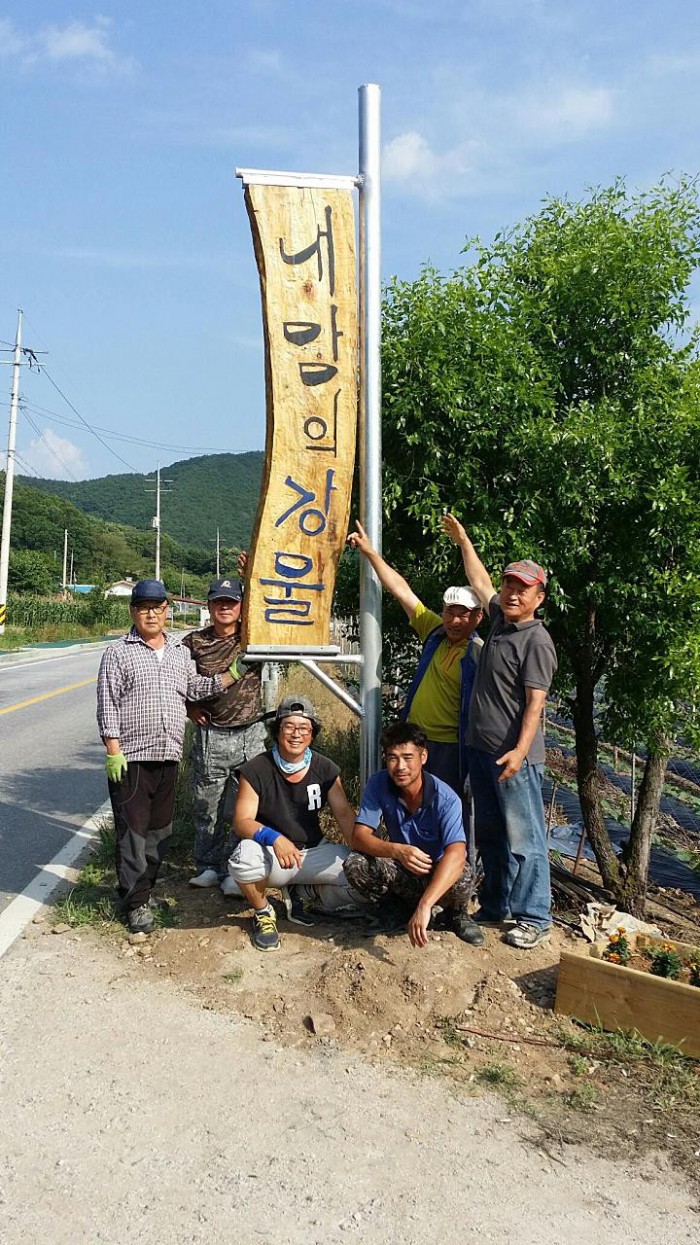 좋은 이름을 지어주신분, 새 이름으로 멋진 간판을 만들어 보자고 간판부재목을 구해 주신 분, 이를 다듬어 정감있는 서각을 해 주신 분, 1.5미터 깊이의 땅구덩이를 파고 8미터 길이의 100미리 철파이프를 세워주신분들, 이 철기둥에 수십킬로 무게의 입간판을 들어올려 달아주신분들, 이 모두가 지용 한옥학교 목수반의 친구들입니다.
